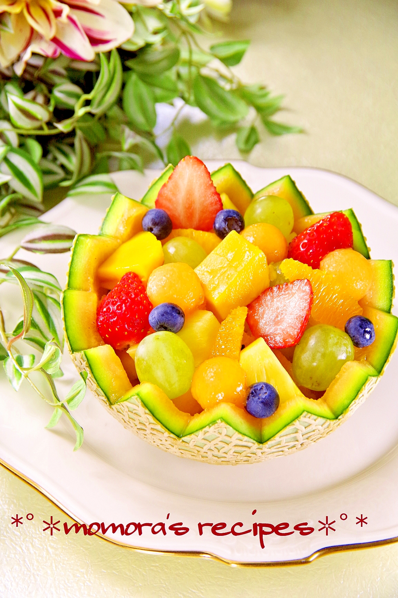 おもてなしにも メロンの器で鮮やかフルーツポンチ レシピ 作り方 By ももら 楽天レシピ